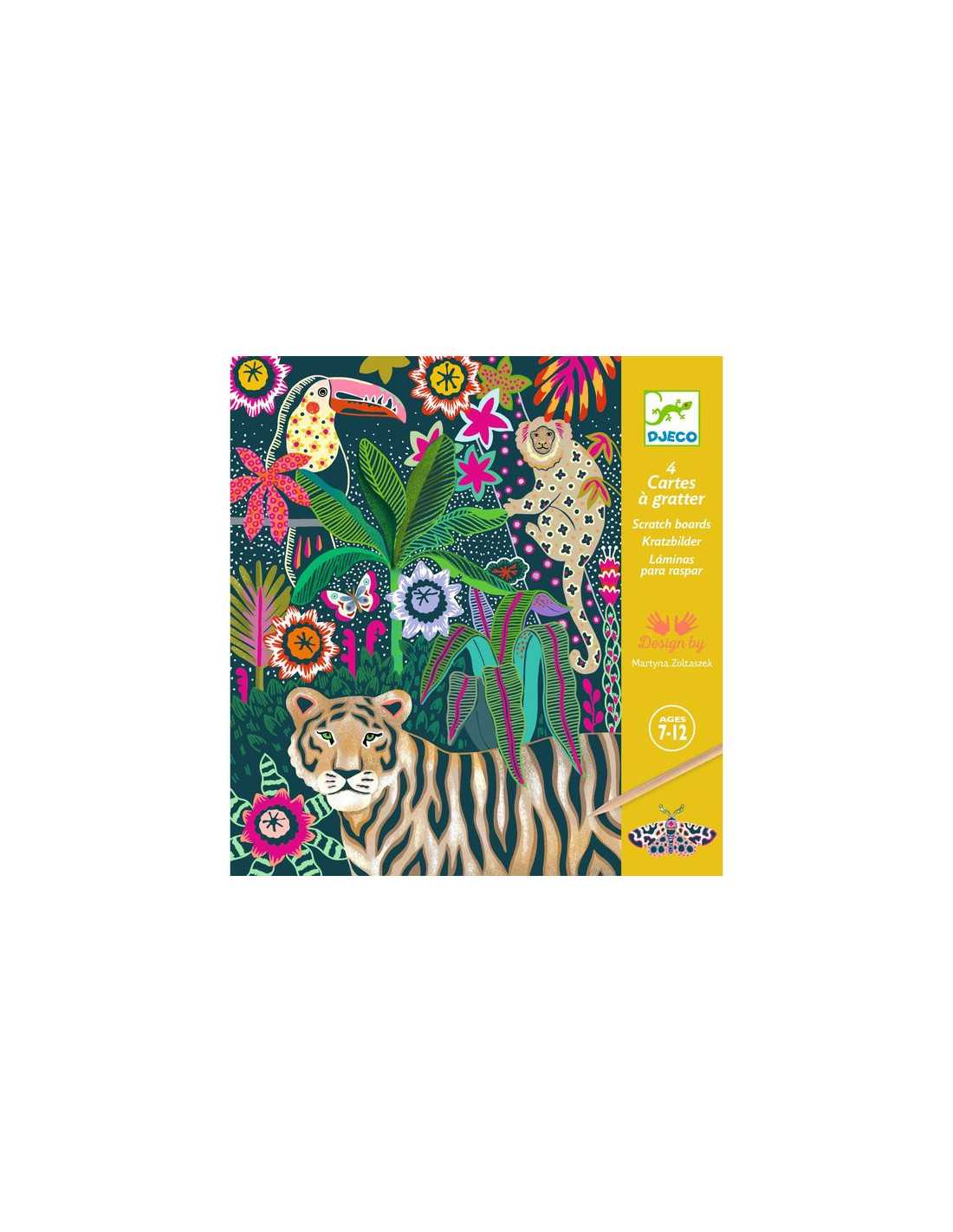 Une pochette de 4 cartes à gratter avec couleur fluo dans une ambiance chatoyante.
