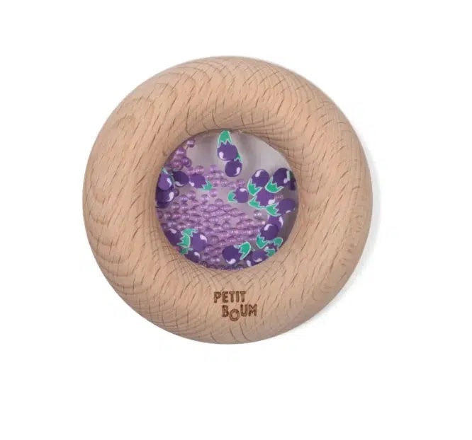 Notre nouveau jouet sensoriel ravira les plus petits. Il s’agit d’un hochet en bois en forme de beignet, idéal pour que vos mains puissent le manipuler confortablement. À l’intérieur, on distingue des figures de fruits et de légumes qui, lorsqu’ils sont secoués, libèrent l’irrésistible signature sonore de la maison. Même si vous avez envie de le manger, il est fabriqué en bois de hêtre naturel, non toxique et résistant aux morsures.