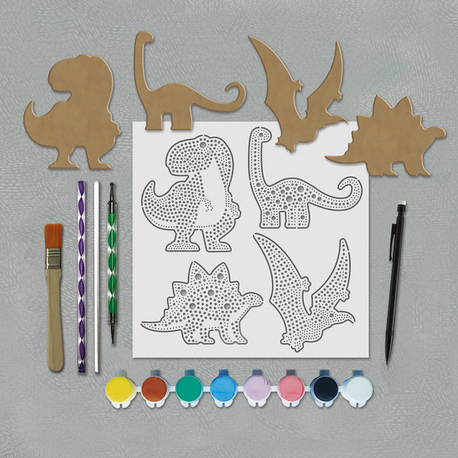 Le coffret Dot Painting Dino permet aux enfants de s’initier à la décoration créative en découvrant une nouvelle activité tendance, le Dot Painting : peindre avec des points.