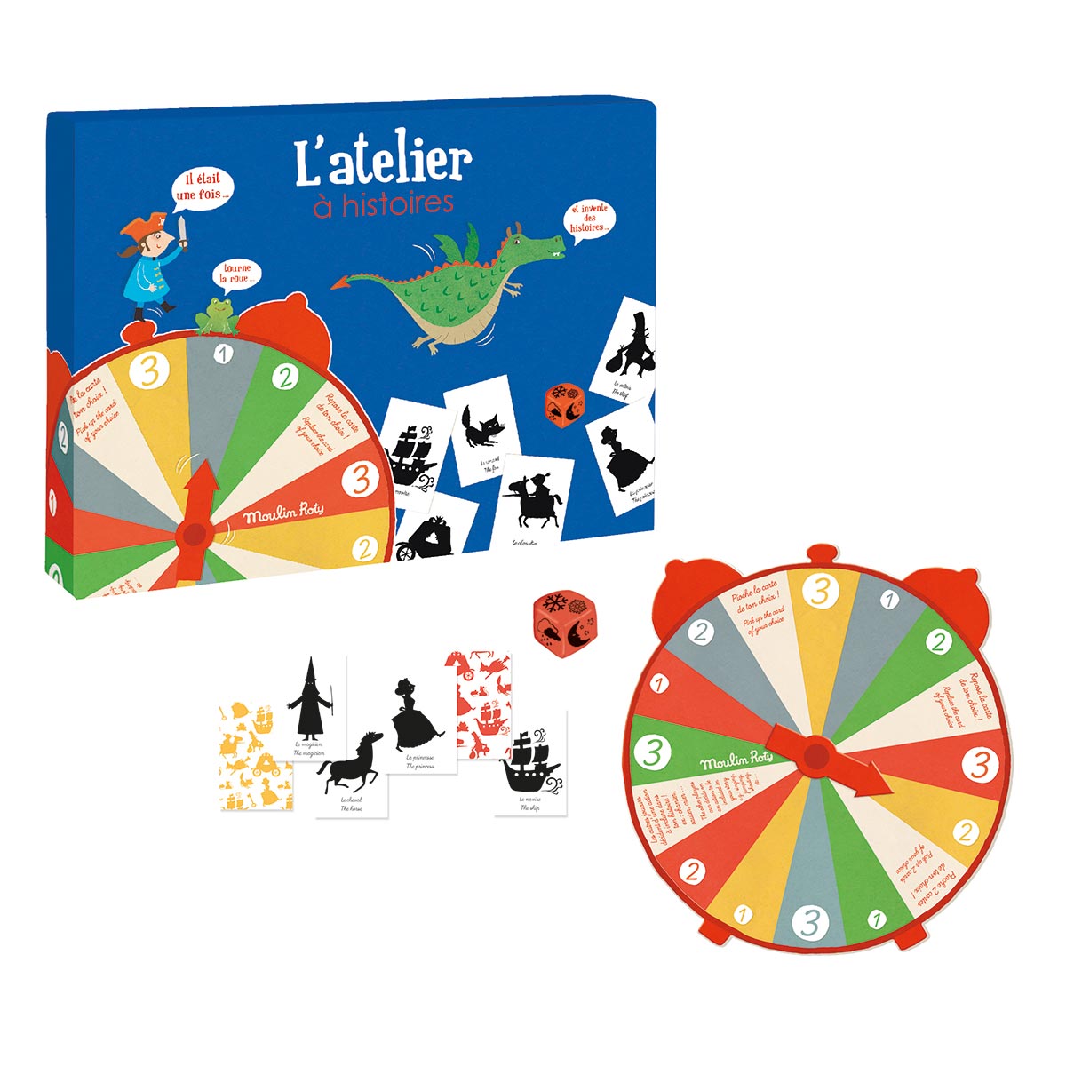Ce jeu comporte une roue en carton dont il faut faire tourner la flèche. Le premier joueur pioche alors le nombre de cartes indiquées sur la roue dans la pile de couleur correspondante. Ensuite, il doit retourner toutes ses cartes et inventer une histoire qui met en scène tous les personnages, lieux, objets et animaux illustrés sur les cartes. Son histoire doit commencer par « Il était une fois… ».