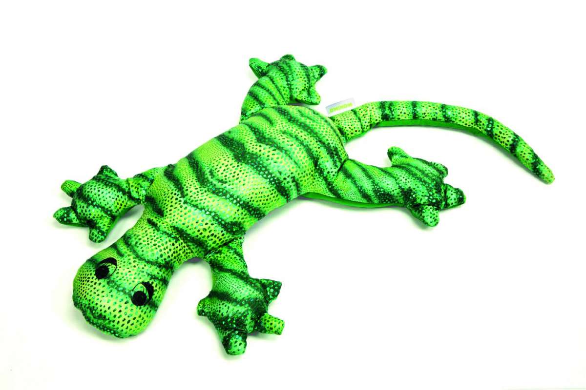 Le lézard est généralement placé sur les épaules ou les pattes. Les quatre grands pieds avec orteils procurent un sentiment de sécurité et de sûreté. Le lézard pèse 2 kg.