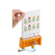 L’enfant doit tout d’abord comprendre l’énigme. Puis il enfonce le stylet dans le trou qui se trouve sous ce qu’il estime être la bonne réponse. Si c’est exact la fiche peut être retirée. Dans le cas contraire il faut réfléchir encore!