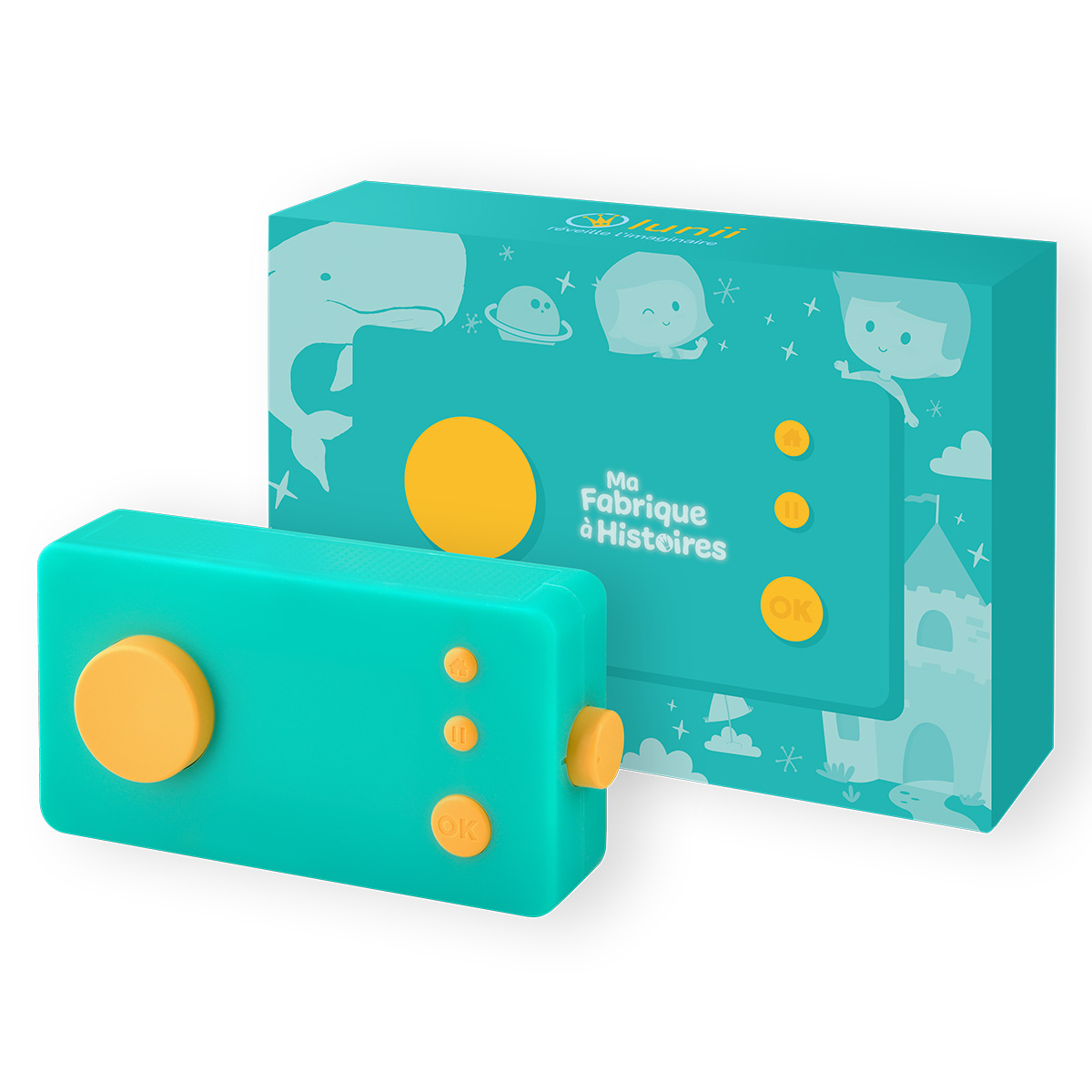 Pas d’écran, place à l’imagination ! Un héros, un lieu, un compagnon et un objet… Avec Lunii, votre enfant choisit les éléments de son récit et écoute les histoires qu’il a fabriquées.