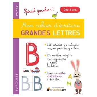 La véritable nouveauté proposée par les éditions Larousse, c’est la publication d’une déclinaison pour gauchers des fascicules Mon cahier d’écriture grandes lettres et Mon cahier d’écriture petites lettres.