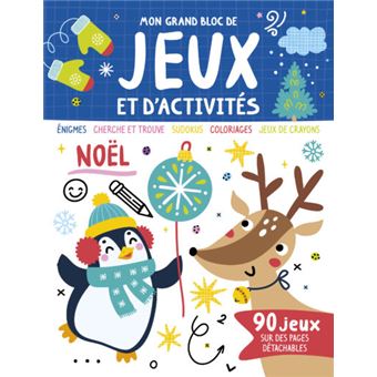 Dans ce bloc de jeux très coloré, les enfants vont pouvoir laisser libre cours à leur imagination. Jeux d’observation, énigmes, labyrinthes, sudoku, mots mêlés, coloriages, découpages… Voilà en perspective des heures d’amusement pour patienter en attendant le Père Noël ! Les pages sont détachables et imprimées recto verso.