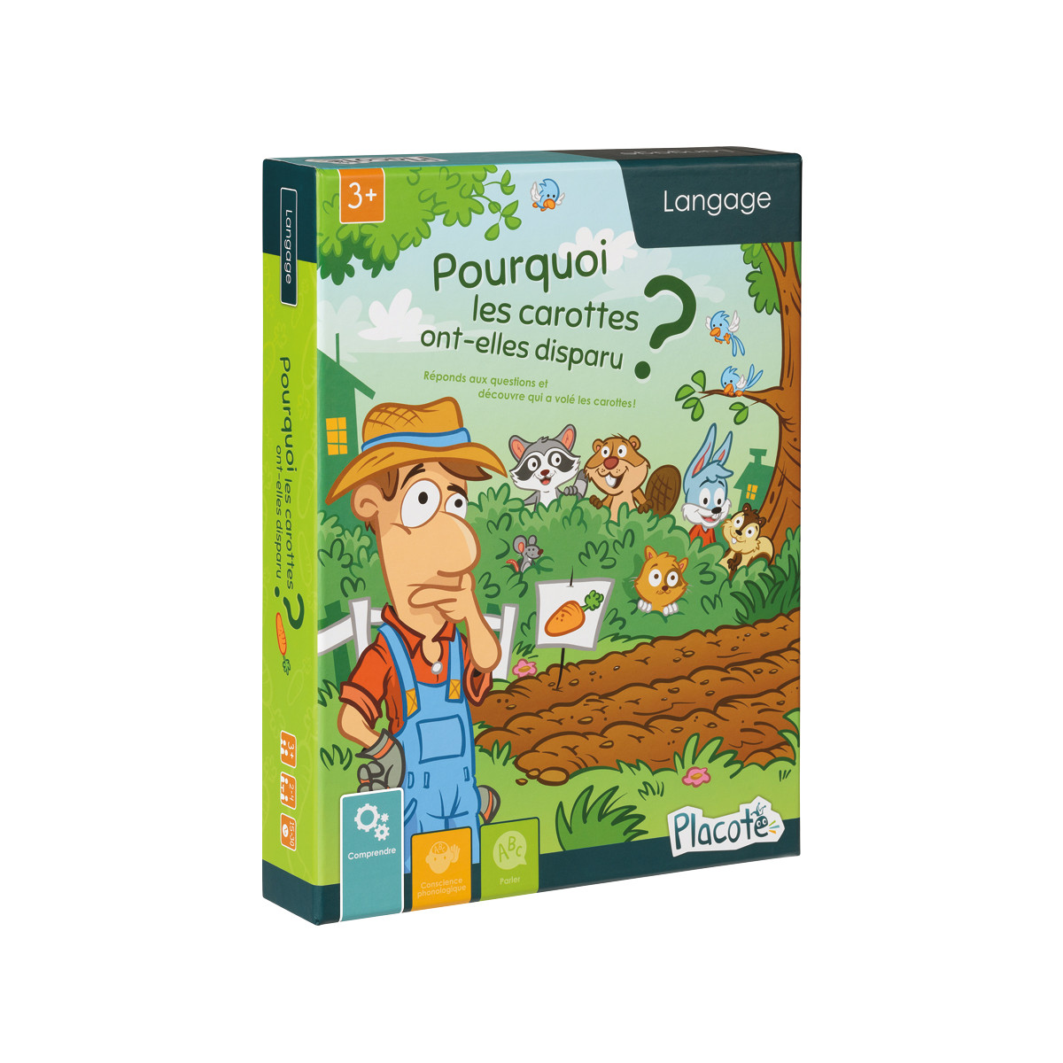 Pourquoi les carottes ont-elles disparu? est conçu pour aider les enfants de 3 ans à 5½ ans à développer leur compréhension des questions formulées avec le mot interrogatif «pourquoi». Les cartes questions-réponses illustrées leur permettent de valider eux-mêmes leurs réponses.