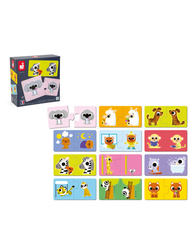 Rapide ou lent, propre ou sale, en avant pour les contraires ! Découvrez avec vos enfants ce joli jeu éducatif sur les contraires, illustré avec des animaux rigolos et conçu pour les enfants dès 2 ans. Ce jeu sous forme de puzzle offre un double apprentissage : la reconnaissance des animaux et l’imitation des gestes du quotidien pour illustrer les différences. Ce jeu d’association est idéal pour développer la motricité fine et favoriser la concentration des petits. De plus, les grosses pièces sont parfaitement adaptées à leurs petites mains, rendant le jeu facile et agréable. Ce jeu contient 12 puzzles, chacun composé de 2 pièces. Chaque puzzle représente un animal différent effectuant une action. L’objectif : assembler les 2 parties du puzzle en s’aidant du fond coloré et comprendre les contraires représentés !
