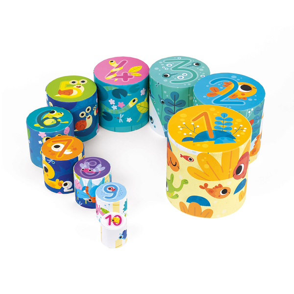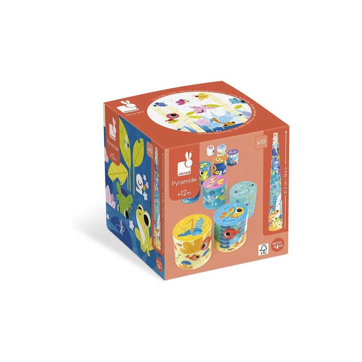 Cette pyramide de 10 éléments ronds, constitue aussi un puzzle vertical où votre enfant devra faire correspondre les différents niveaux pour découvrir la vie dans la mare