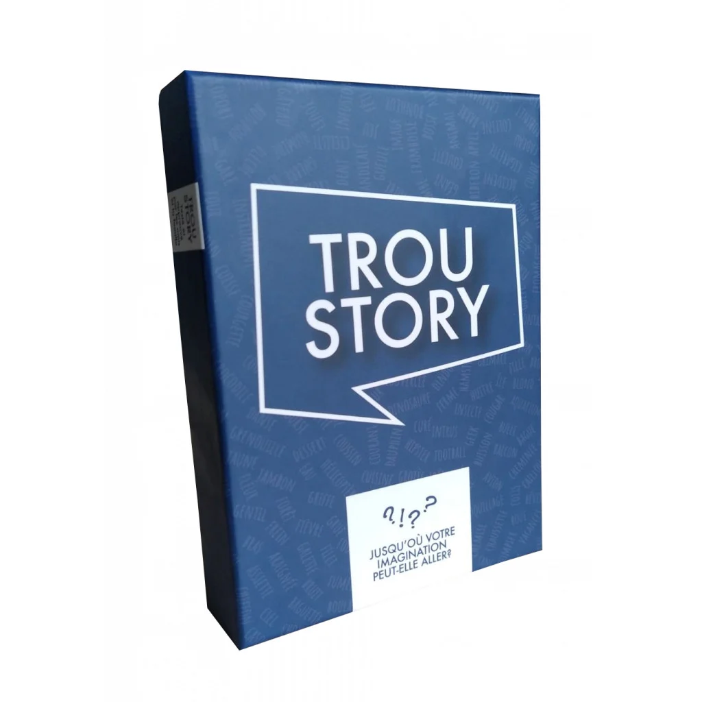 TrouStory est un jeu d’ambiance, facile à jouer, facile à expliquer : Vous allez devoir raconter une histoire dans un contexte imposé. Par exemple « Une bagarre éclate dans le bar, la police arrive. Que s’est il passé? »… et là vous commencez votre histoire, mais attention vous avez 5 mots à faire deviner à votre auditoire! Vous pouvez jouer en « battle » avec l’arbitrage du master, ou plus simplement. Chaque mot trouvé, vous rapport 1 point. La meilleur histoire rapporte 3 points.