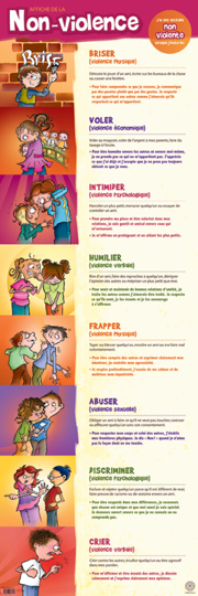 Cette affiche permet de prévenir la manifestation de comportements violents chez les enfants et surtout de valoriser des attitudes non-violentes.