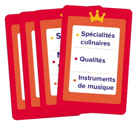 Par exemple : « Mots qui riment en ouille » : Carte B comme Bredouille, carte P comme Papouille, carte Q comme Quenouille, etc.