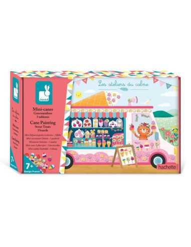 Ces petites tranches en pâte polymère en forme de fruits ou de gâteaux viennent se coller sur les tableaux pour leur apporter toujours plus de gourmandise ! Pour cela, les enfants s’aident de la pince fournie et placent les sucreries sur les tableaux autocollants : une activité qui invite au calme, à la précision et à l’expression créative. Sont inclus dans ce kit créatif : 3 tableaux autocollants, 370 mini-canes de 8 modèles différents et 1 pince.